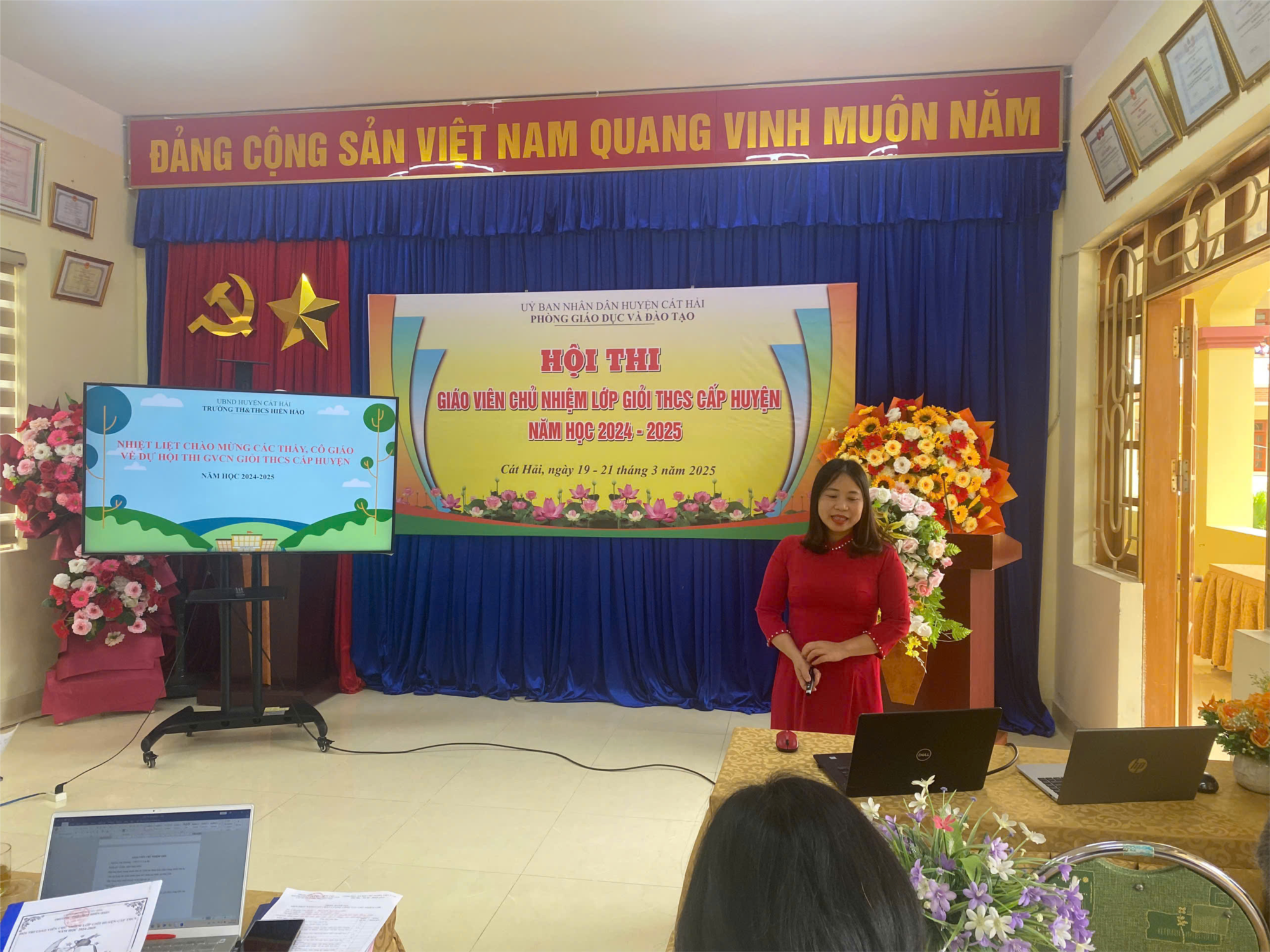 Thực hiện Kế hoạch số 96/KH-PGDĐT ngày 31/10/2024 của Phòng Giáo dục và Đào tạo Cát Hải về việc tổ chức Hội thi giáo viên chủ nhiệm lớp giỏi cấp huyện – giáo dục THCS năm học 2024 – 2025. Đại diện giáo viên cấp THCS nhà trường đã hoàn thành tốt nội dung trong Hội thi GVCN giỏi cấp huyện.